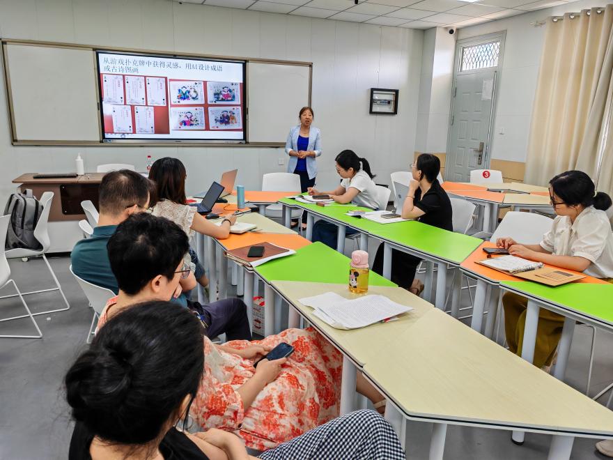 中心教研员张妍以“智慧学伴” 平台为纽带,将 “学科能力微课教学优化”“学科素养测评应用”“学生个性辅导” 三大核心场景串联,通过实操演示让教师直观掌握从“资源供给”到“精准教学” 的转化路径。中心学科教育实验室主任李晓庆则结合浙江省和绍兴市课题研究规划纲要,从课题选题、研究方法、数据收集到成果撰写,系统讲解如何将教学痛点转化为研究切入点,引导教师在实践中积累研究思维,利用多元化AI工具辅助课题研究。生动的案例与实用的方法,让在场教师深受启发。