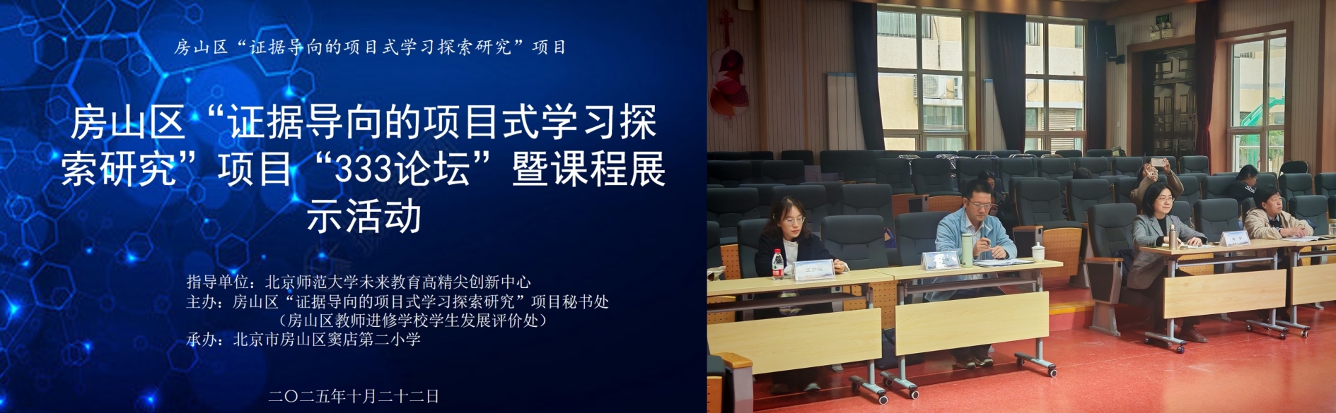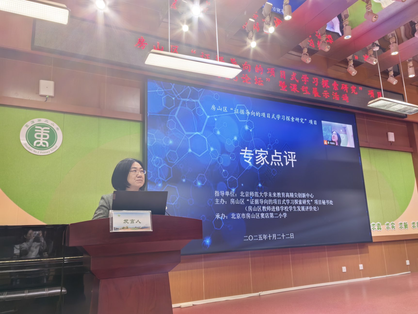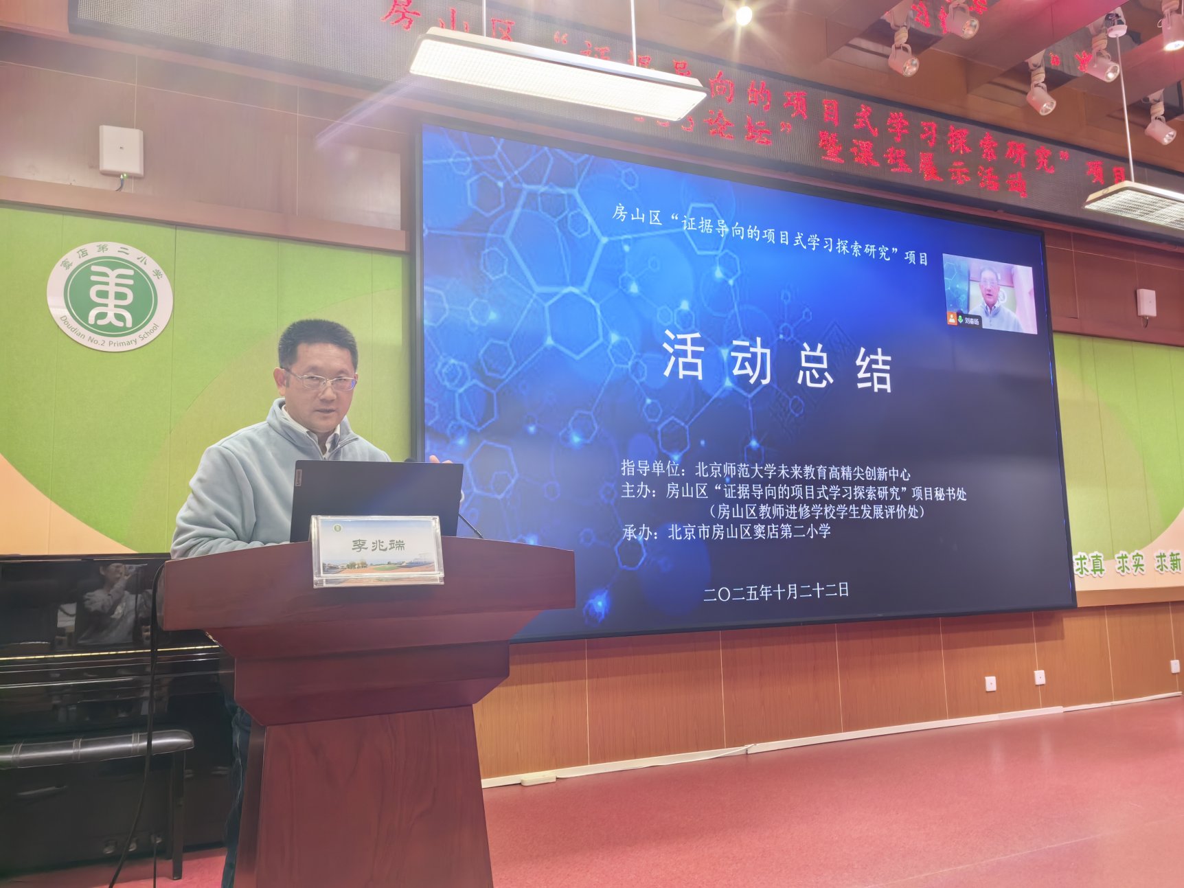为深入贯彻落实《教育强国建设规划纲要(2024-2035年)》中“促进人工智能助力教育变革”“深化人工智能助推教师队伍建设”以及《北京市深化基础教育课程教学改革实施方案》中“推进教与学方式变革,积极探索项目式学习等综合性教学活动,促进知识结构化”的理念,2025年10月22日下午,北京师范大学未来教育高精尖创新中心与房山区教师进修学校合作举办的“证据导向的项目式学习探索研究”项目“333论坛”暨课程展示活动顺利举行。本次论坛以“项目学习:让教育因适合而美好”为主题,由房山区窦店第二小学承办。线下参加本次论坛的有项目组专家、北京师范大学教育学部教育技术学院院长、教授马宁,房山区教师进修学校学生发展评价处主任李兆端,窦店第二小学党支部书记、校长张德秀,房山区教师进修学校学生发展评价处教研员强文媛、王梦瑶,项目校主管领导、项目联络员、学科骨干教师、试点先行学校相关研究人员、课题组成员线上参会。刘春旸主持本次论坛。