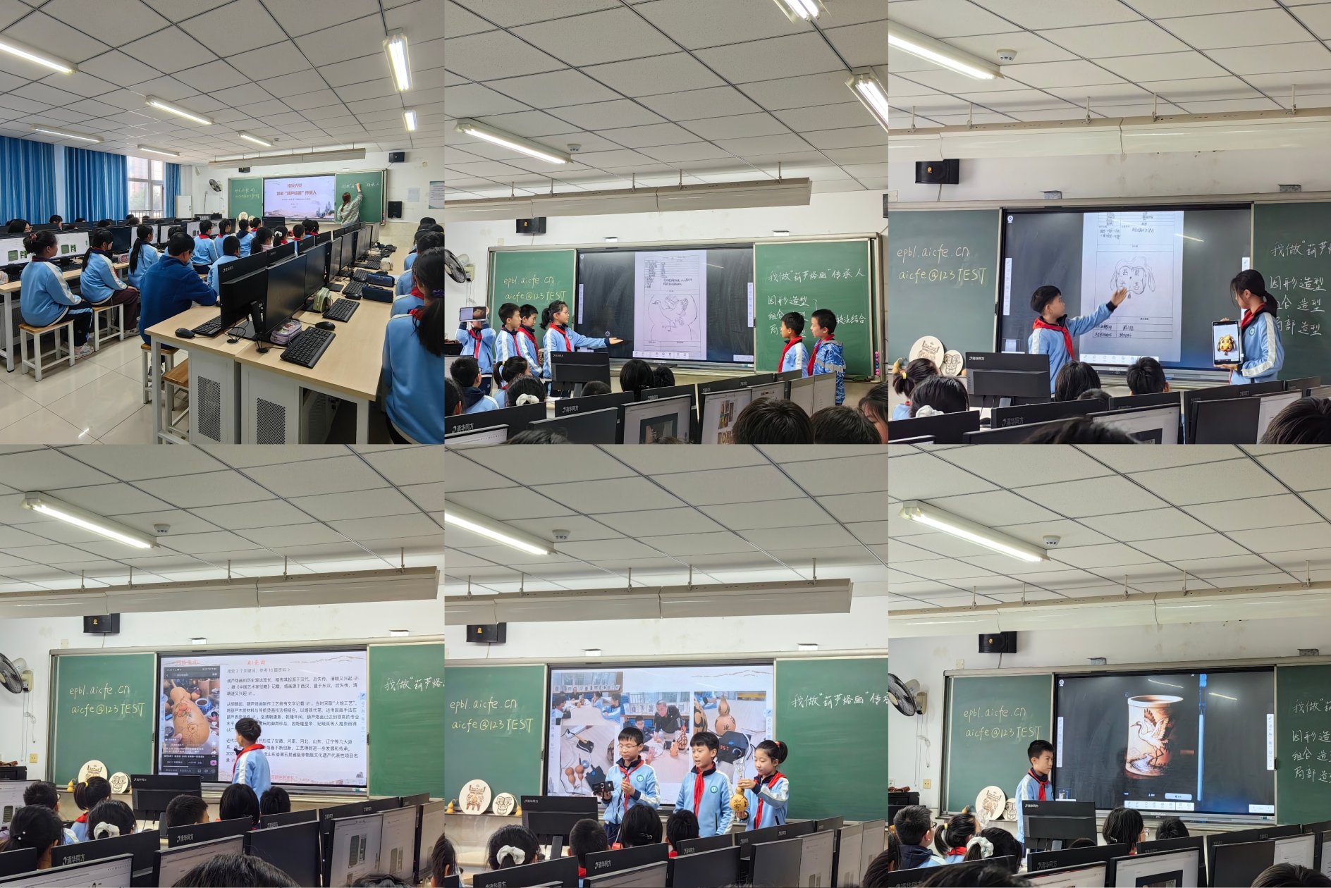 窦店第二小学教师李雨芊执教现场课《我做非遗传承人》。在课程中,教师结合“证据导向的项目式学习系统”,通过前期调研、方案设计、动手实践与成果展示,聚焦家乡非遗“葫芦烙画”。学生从了解葫芦烙画历史与制作工艺入手,小组合作设计“葫芦烙画”方案,预测制作难点并探讨解决方法。在创意物化阶段,学生绘制设计草图,并借助人工智能工具优化效果,逐步完善作品构思。