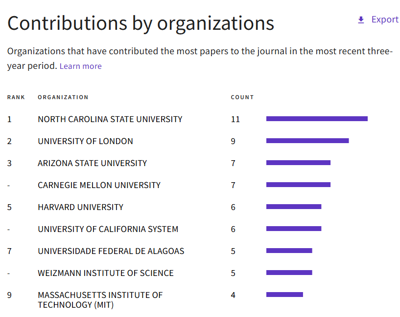 《International Journal of Artificial Intelligence in Education》是国际教育人工智能学会(International AIED Society)的旗舰期刊,在计算机科学与教育跨学科应用领域具有重要地位。该刊最新五年影响因子达8.8,在JCR分区中位列Q1区(前8.3%),是本领域公认的顶级学术期刊。该刊年均发表学术论文50篇左右,2024年论文接受率为5.6%,主要来自卡内基梅隆大学(Carnegie Mellon University)、哈佛大学(Harvard University)等欧美著名高校。